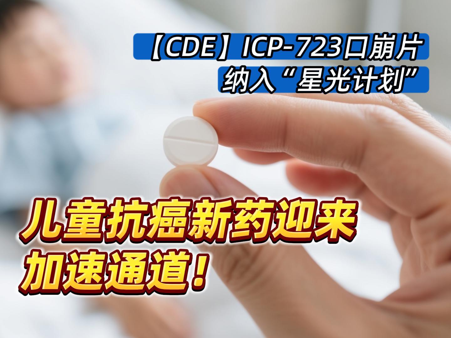 儿童抗肿瘤新药研发迎来重大利好!8月21日,国家药审中心将“ICP-723口崩片”纳入“星光计划”给予重点支持。“星光计划”是对符合条件的儿童抗肿瘤新药研发项目给予审评指导、沟通交流等多方面的政策支持,用以加速其临床研发和上市进程。也就意味着ICP-723口崩片作为一款针对NTRK基因融合阳性的实体瘤的治疗药物,其研发将获得国家层面的重点关注与助推。儿童抗肿...