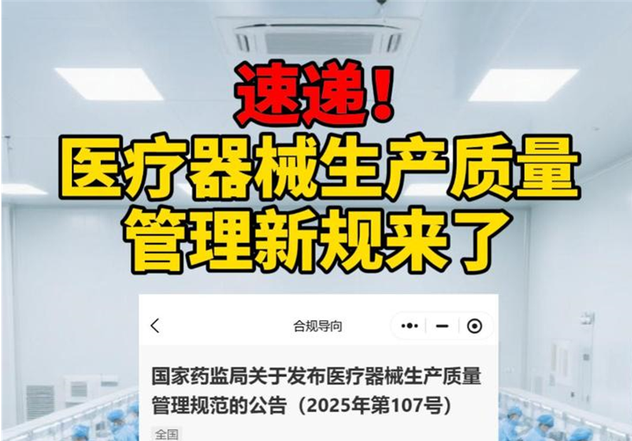 国家药监局重磅发布2025年第107号公告,新版《医疗器械生产质量管理规范》正式落地!新规对医疗器械生产的全生命周期质量管理提出了更高要求,旨在全面强化安全底线。这意味着从原材料采购到生产全过程,再到上市后监测,所有环节都将面临更严格的监管。请所有医疗器械生产企业务必密切关注,及时学习和对照新规进行自查与升级,确保合规生产。