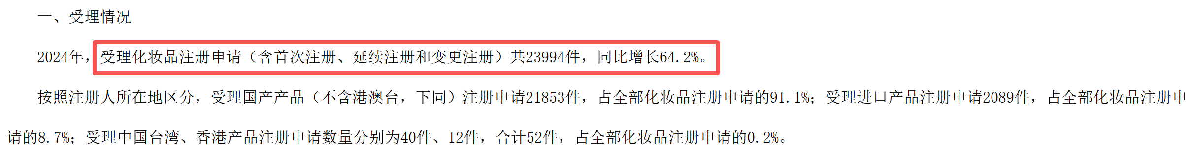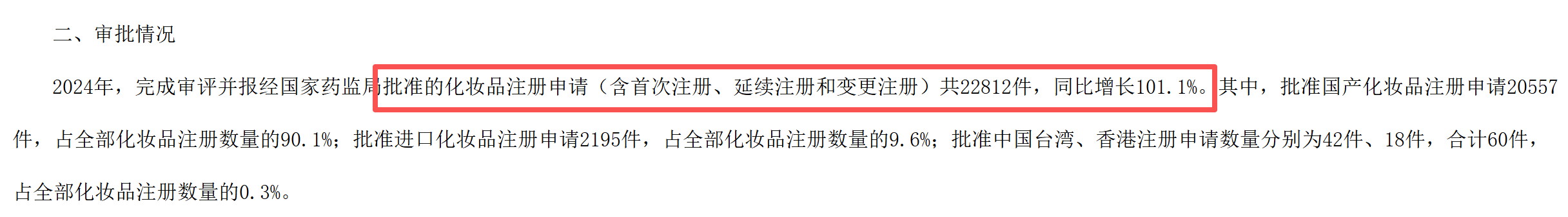 ·全年批准特殊化妆品注册申请22812件,同比增长101.1%,远超受理数量的增长率(64.2%);