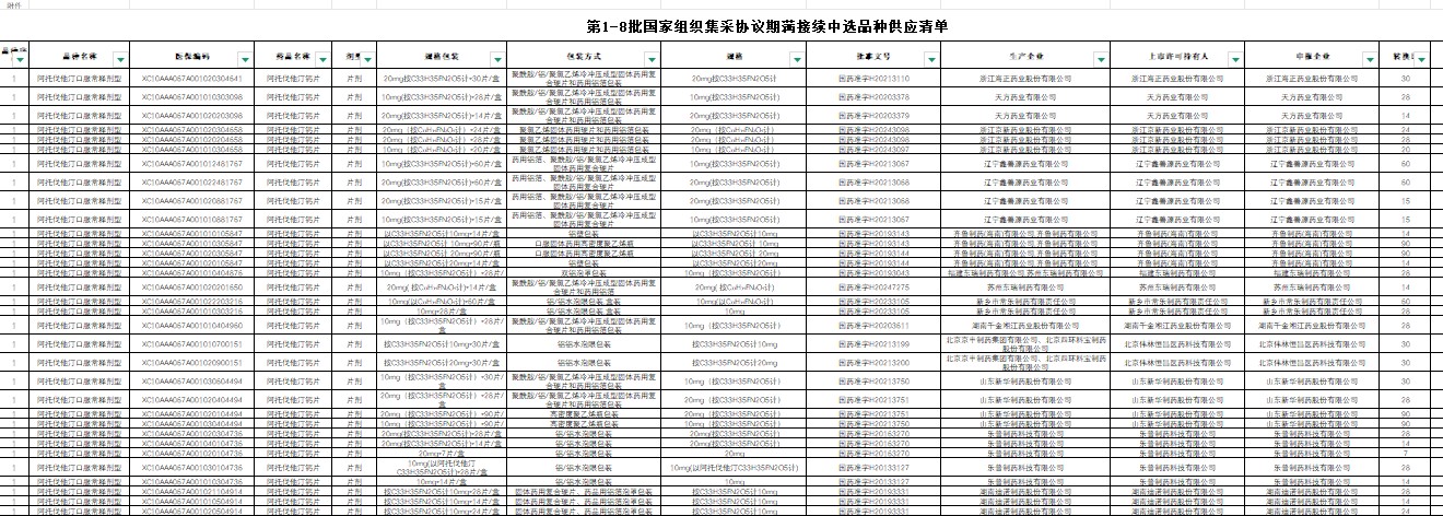 黑龙江省2026年第1-8批国家组织集采协议期满接续中选品种供应清单