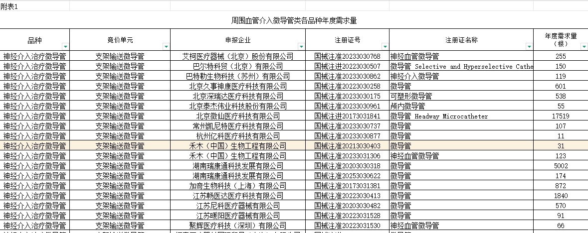浙江省周围血管介入微导管类各品种年度需求量及竞价单元信息(20260318)
