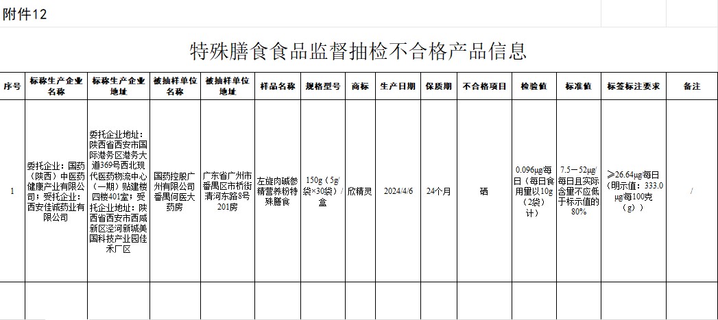 市场局特殊膳食食品监督抽检不合格产品信息(20260316)