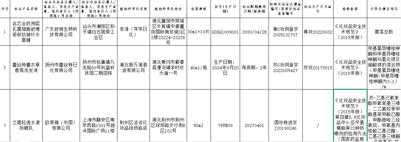 湖北省3批次不符合规定化妆品信息(2026年第1期)