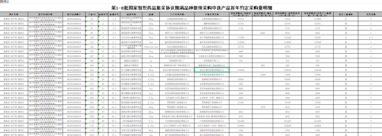 青海省2026年第1-8批国家组织药品集采协议期满品种接续采购中选产品首年约定采购量明细(提供电子版)