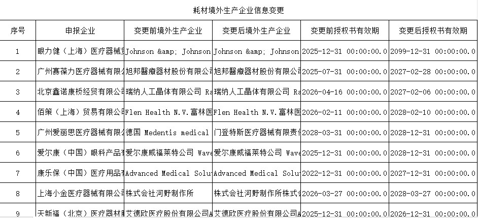 四川省耗材境外生产企业信息变更