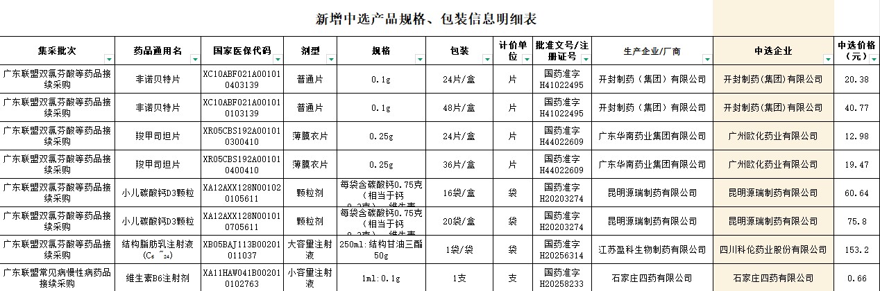 河南省新增中选产品规格、包装等信息明细表(20260325)