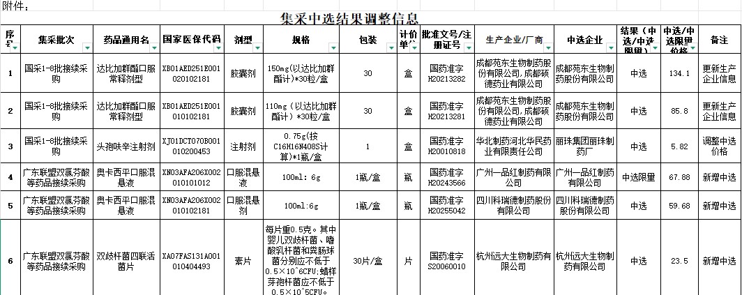 河南省集采中选结果调整信息(20260325)