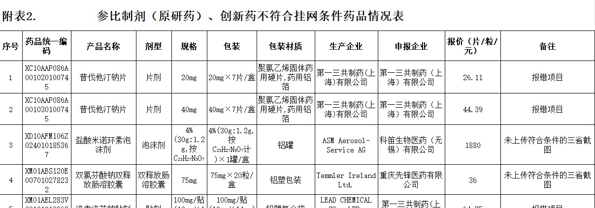 河北省参比制剂(原研药)、创新药不符合挂网条件药品情况表(20260325)