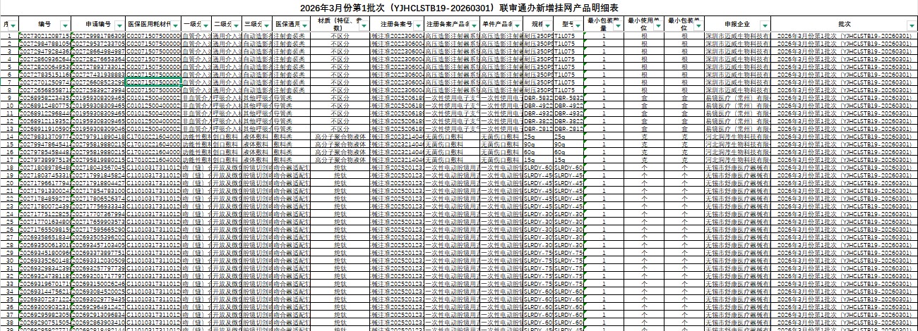 广东省2026年3月份第1批次(YJHCLSTB19-20260301)联审通办新增挂网产品明细表