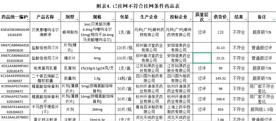 河北省2026年3月已挂网不符合挂网条件药品表