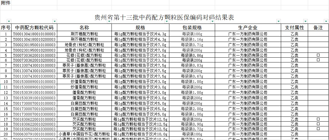 贵州省第十三批中药配方颗粒医保编码对码结果表