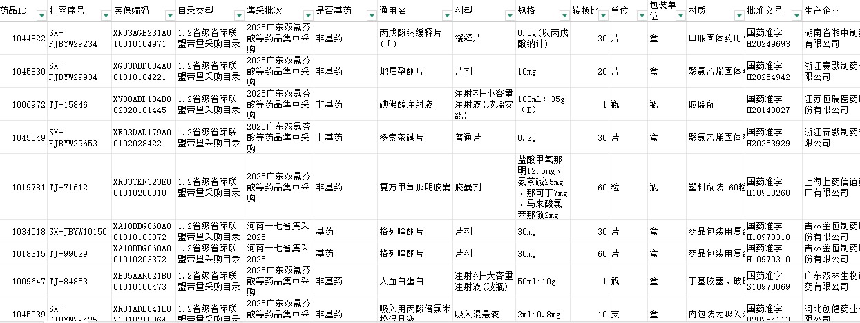 文书类别:药品/目录表格/其他