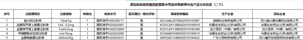 广东省易短缺和急抢救药联盟集中带量采购新增中选产品公布信息(二十)