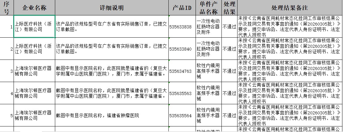 云南省医用耗材常态化挂网工作(第20260305批)申诉质疑处理结果