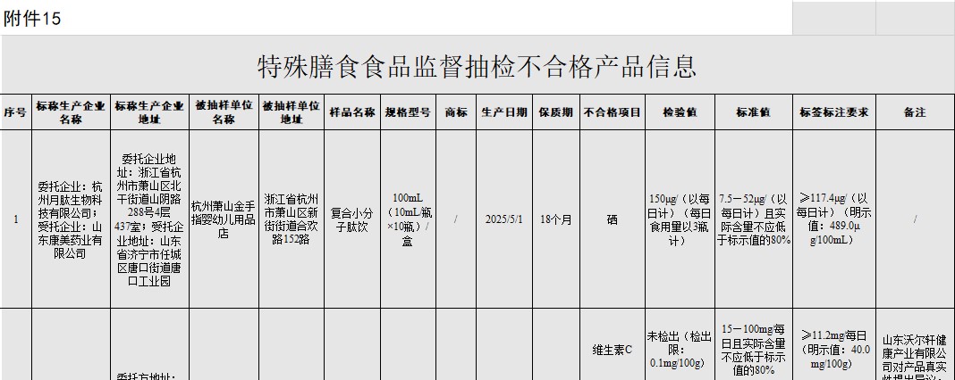 特殊膳食食品监督抽检不合格产品信息(20260403)