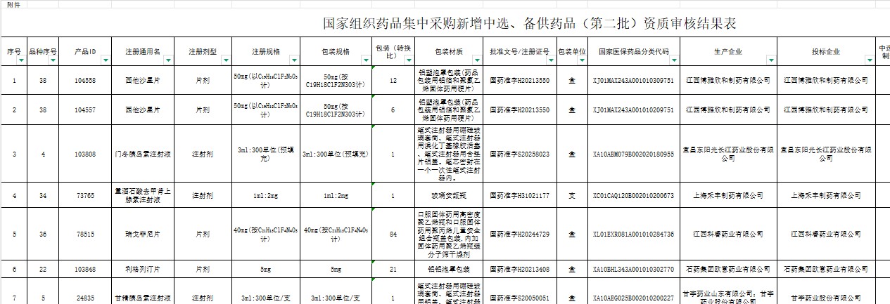 宁夏回族自治区国家组织药品集中采购新增中选、备供药品(第二批)资质审核结果表