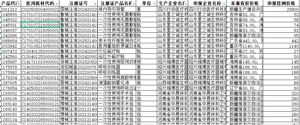 河南省2026年3月企业申报医用耗材(试剂)申报挂网价格信息公示表