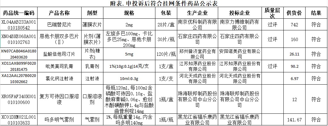 河北省部分药品竞价挂网(2026年3月份)申投诉后符合挂网条件药品公示表