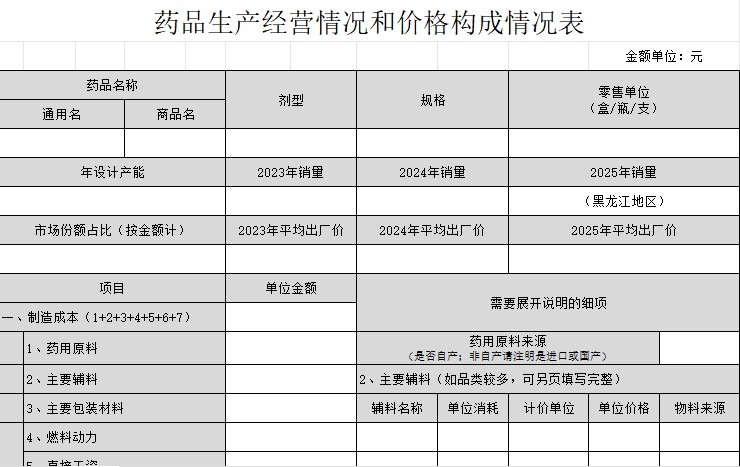 黑龙江省药品生产经营情况和价格构成情况表