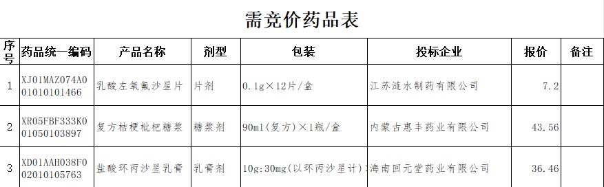河北省需竞价独家化药药品表(2026年3月份)