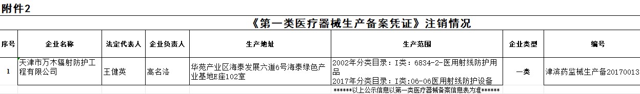 天津市第一类医疗器械生产备案公示(2026第3期)