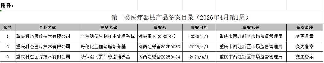 重庆市2026年4月第1周第一类医疗器械产品备案目录