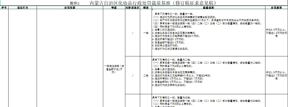 内蒙古自治区化妆品行政处罚裁量基准(修订稿)