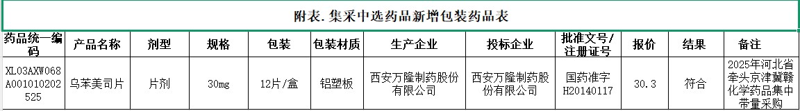 河北省集采中选药品新增包装药品表(20260413)