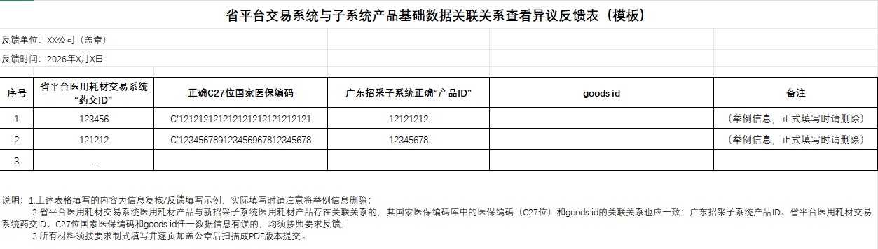 广东省医保医用耗材医保编码基础数据关联关系信息复核反馈表(模板)