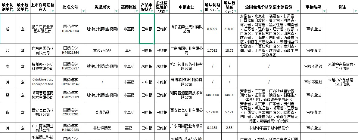 2026年度吉林省四月份“全国联审通办”药品增补挂网全国省级最低价格结果