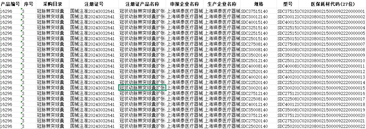 河南省冠脉介入球囊类医用耗材省际联盟集中带量采购中选产品信息表
