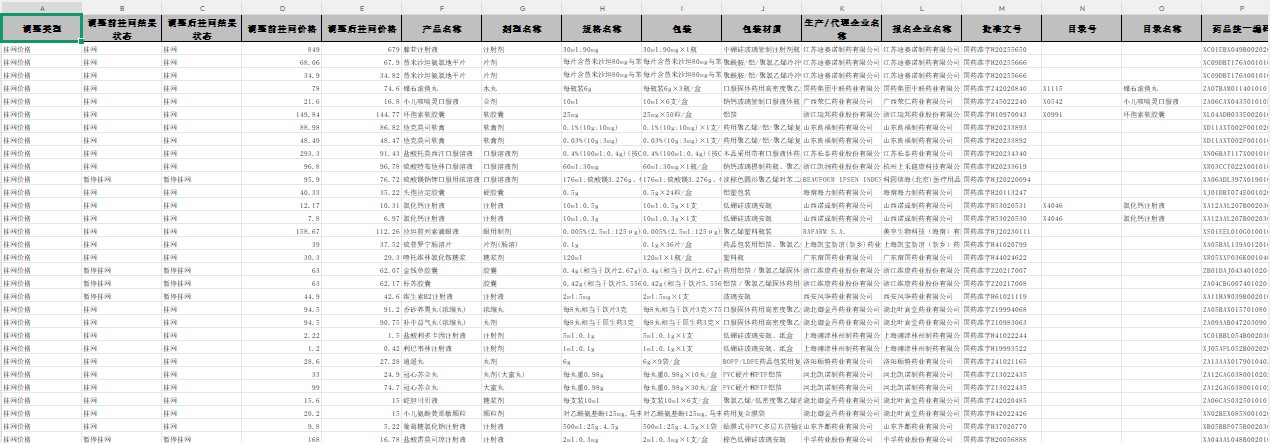 黑龙江省已挂网药品价格调整情况表(第十一批)