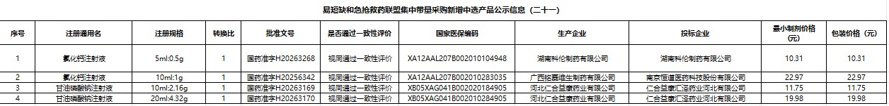 广东省广州市易短缺和急抢救药联盟集中带量采购新增中选产品公示信息(二十一)