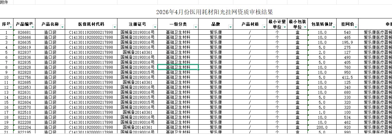 宁夏2026年4月份医用耗材阳光挂网资质审核结果