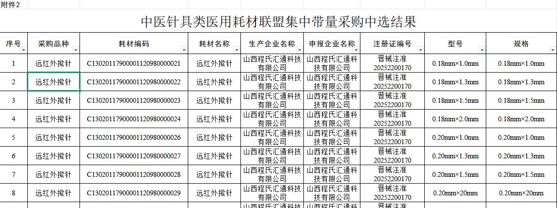 江西省中医针具类医用耗材联盟集中带量采购中选结果(GX-ZYZJ2025-01)