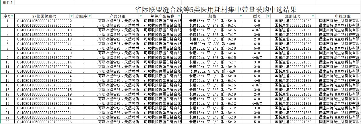 江西省省际联盟缝合线等5类医用耗材集中带量采购中选结果(编号:SJLM-24-HC2025-1)