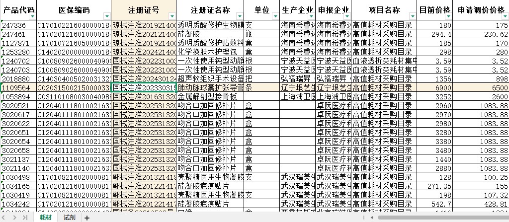 河南省透明质酸修护生物膜等430个医用耗材产品调整价格信息表