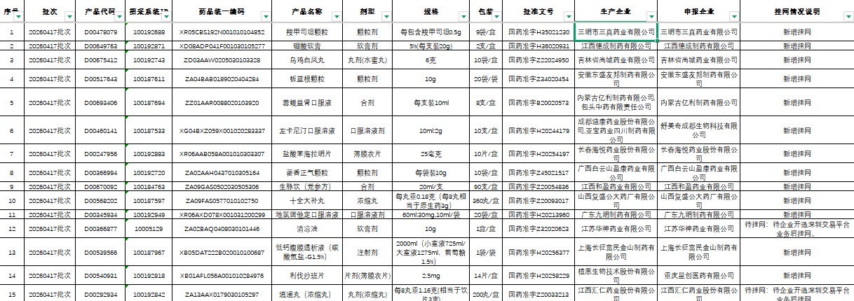 广东省深圳交易平台同步药品挂网数据目录20260417批次