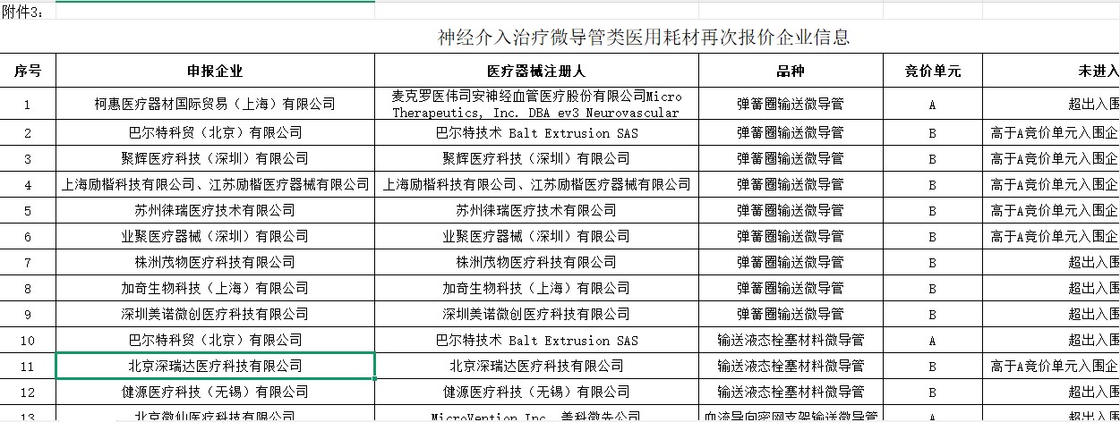 浙江省神经介入治疗微导管类医用耗材再次报价企业及竞价单元范围