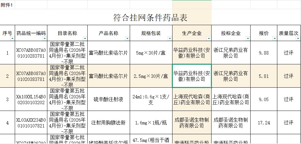 河北省集采同通用名药品符合挂网条件药品表(20260428)