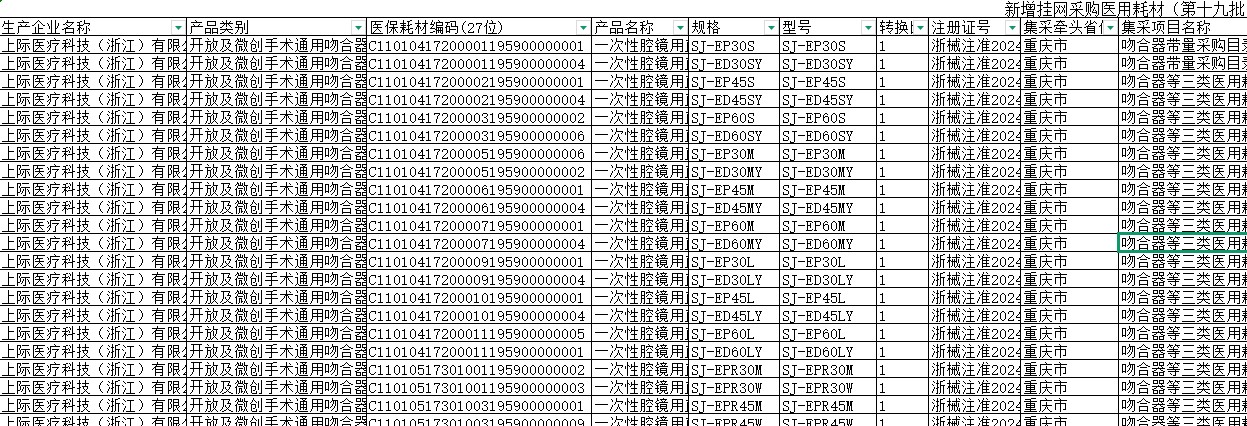 山西省新增挂网采购医用耗材(第十九批)产品目录