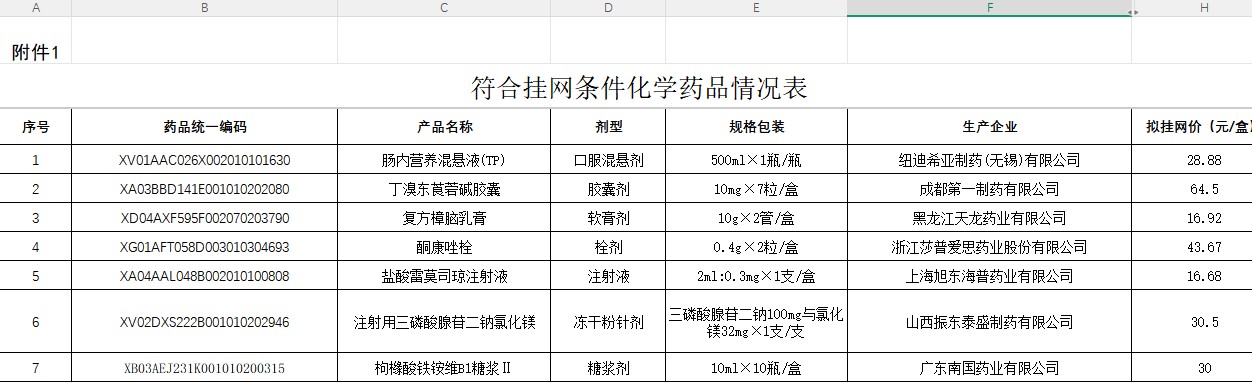 河北省2026年4月化学药品新申报符合挂网药品表