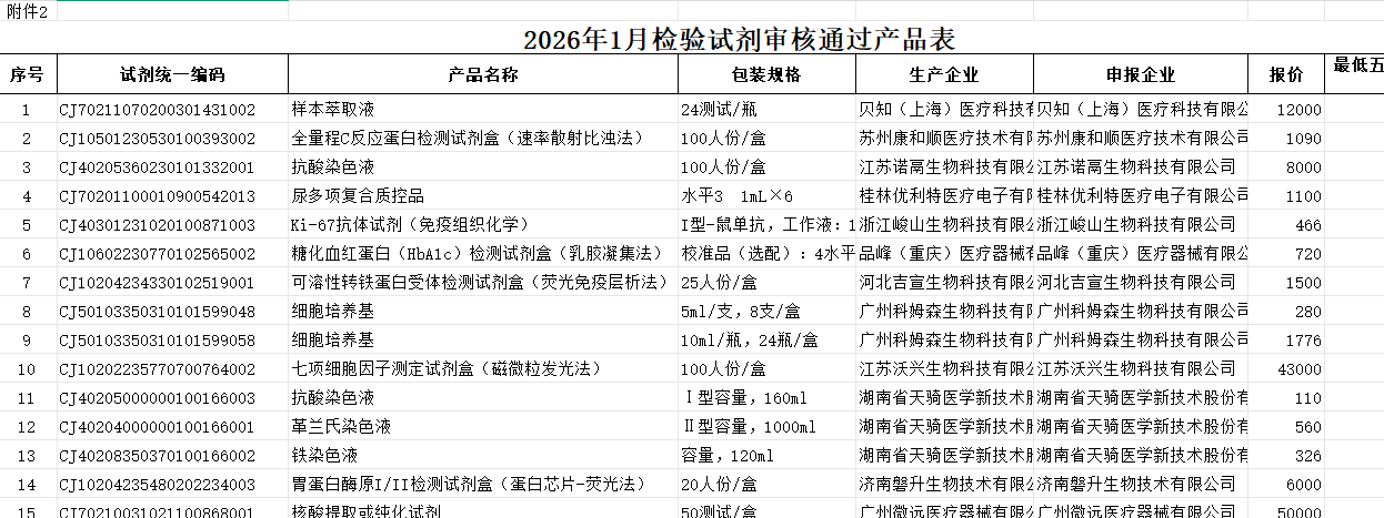 广西2026年1月体外诊断试剂审核通过产品表附件