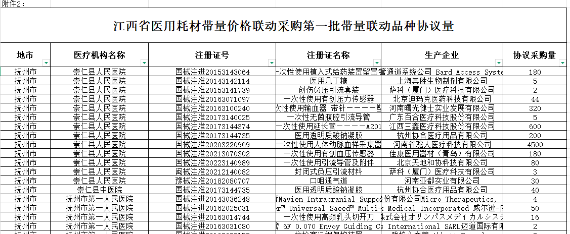 江西省医用耗材带量价格联动采购第一批带量联动品种协议量260116附件
