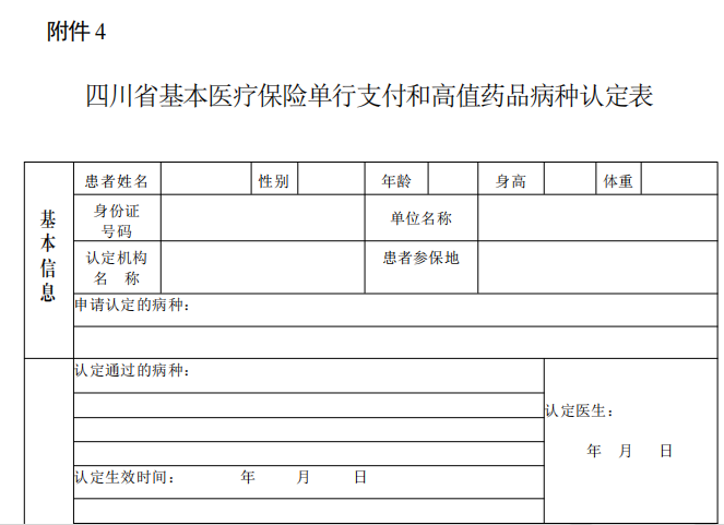 四川省基本医疗保险单行支付和高值药品病种认定表附件