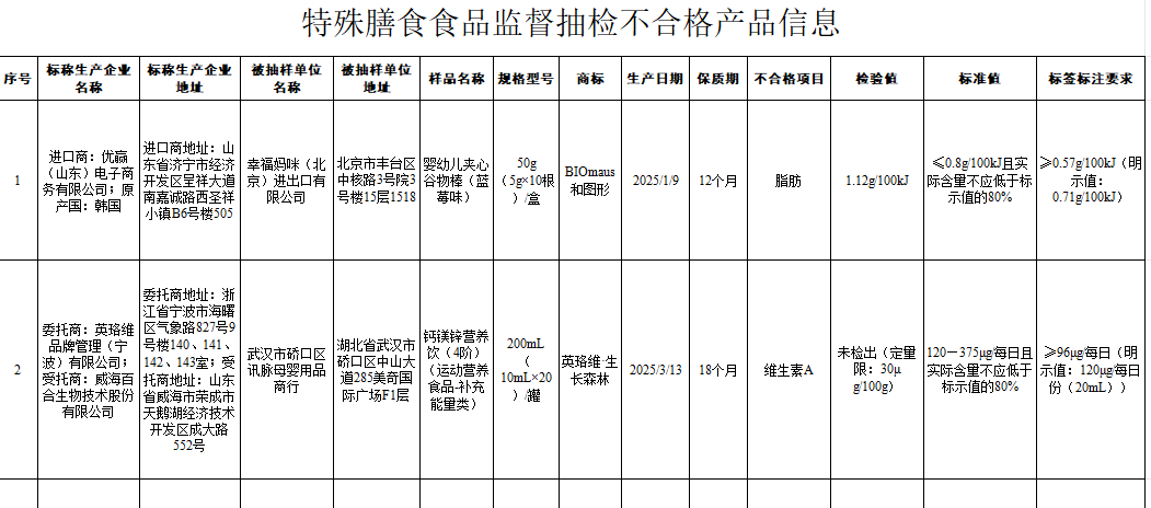 市场监督管理局特殊膳食食品监督抽检不合格产品信息260123附件