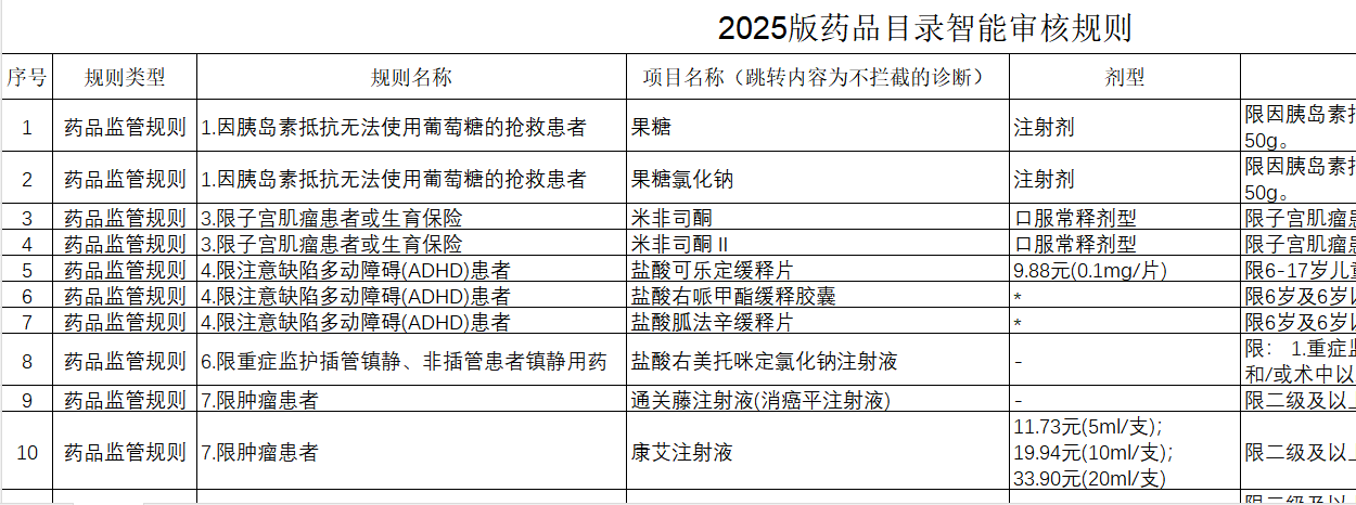 新疆征求“2025版药品目录”智能审核规则意见建议-药品挂网附件