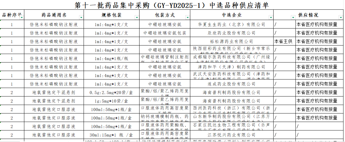 四川省第十一批国家组织药品集中采购中选结果表附件