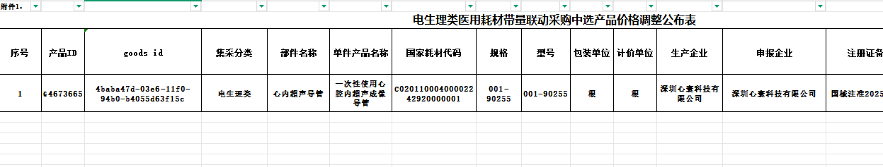 四川省电生理类医用耗材带量联动采购中选产品价格调整公布表附件