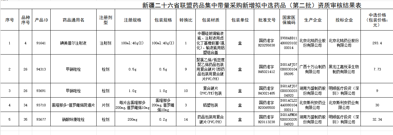宁夏-新疆二十六省联盟药品集中带量采购新增中选药品(第二批)资质审核结果表附件
